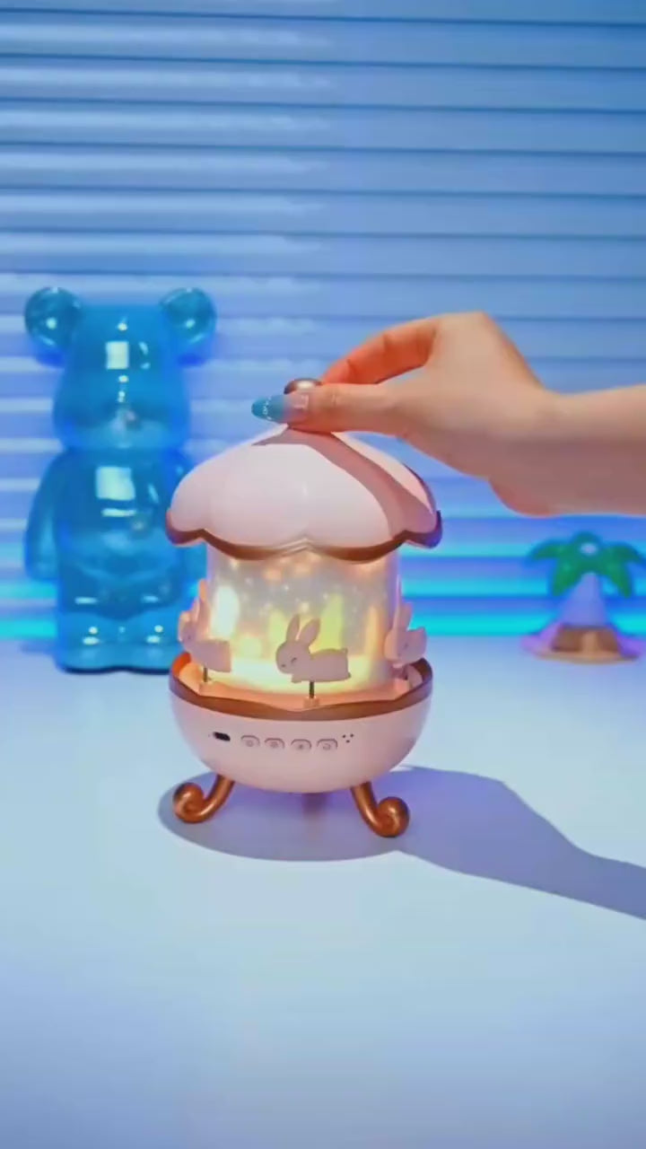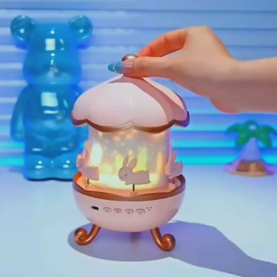 This projector is styled like a miniature fairytale carousel, complete with adorable bunny figurines that appear to dance around the projected scene. It functions as a decorative piece and a practical night light—ideal for nurseries, playrooms, and bedside tables.